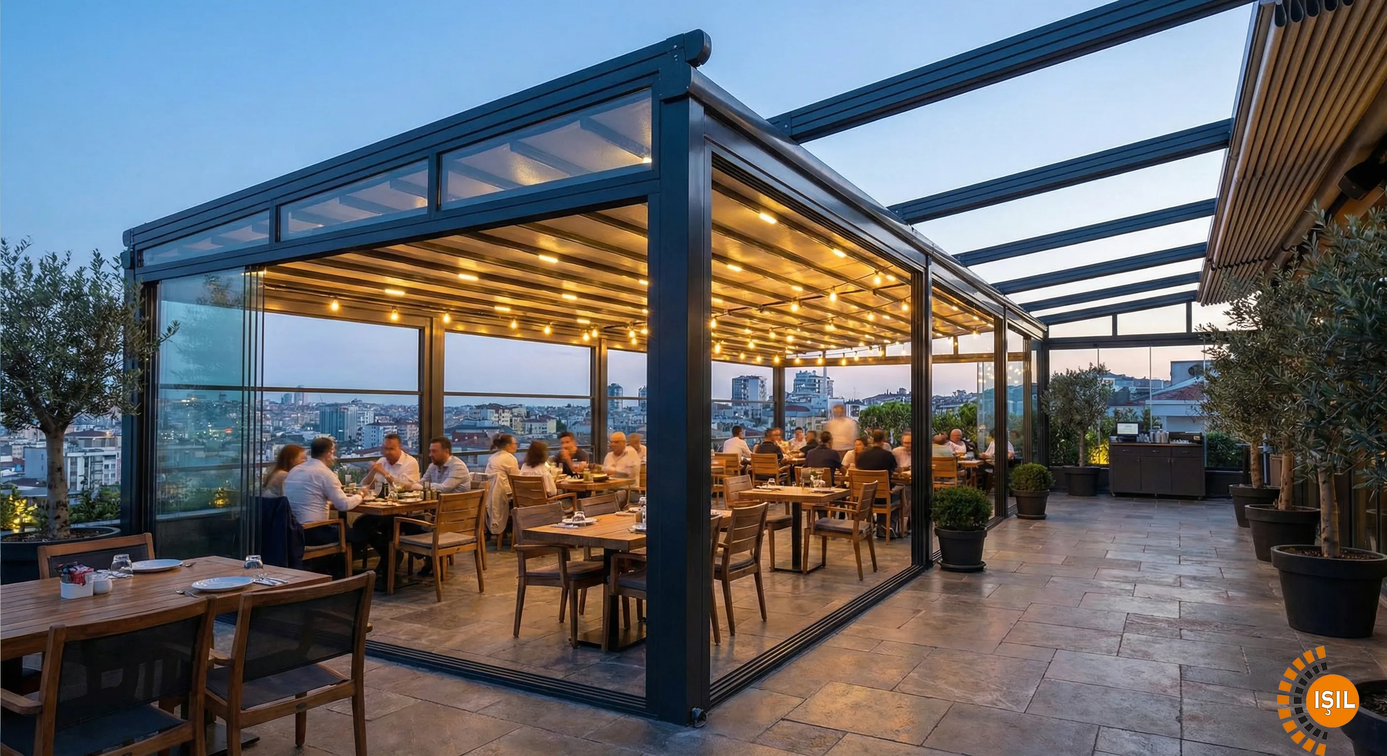Gökyüzüyle aranızdaki engelleri kaldırın. Hareketli cam tavan sistemleri, mekanlarınıza ferahlık ve doğal ışık sağlar. Kış bahçeleri, teraslar ve ticari alanlar için prestijli bir çözümdür.