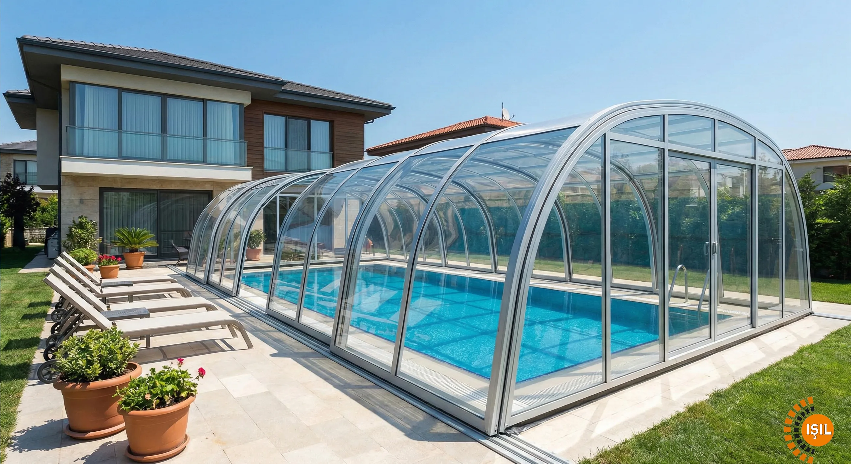 Polikarbon veya cam dolgulu hareketli modüller sayesinde, güneşli günlerde havuzunuzu tamamen açabilir, kışın ise kapalı bir havuz keyfi yaşayabilirsiniz.